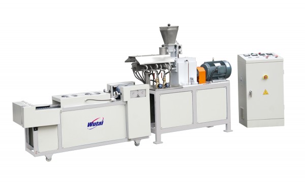 該機是與生產(chǎn)用擠出機相配套的小樣機,由于螺桿轉(zhuǎn)數(shù)與生產(chǎn)擠出機轉(zhuǎn)數(shù)基本一致,所做出小樣與大機生產(chǎn)基本一致。與之相配套的壓片機包括傳送帶及破碎一次完成,該機可做小樣、小試、中試、小批量生產(chǎn)。